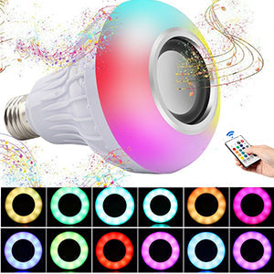 Nuestra BOMBILLA BLUETOOTH CON ALTAVOZ es de alta calidad, brillante y no daña los ojos. Puede usar el control remoto de 24 teclas (incluido) para cambiar los colores RGB y los diferentes modos de nuestra bombilla LED. ¡Luz suave y coloreada y música hermosa, que le brindan una vida maravillosa! ¡Añade un toque de color a tu banda sonora!