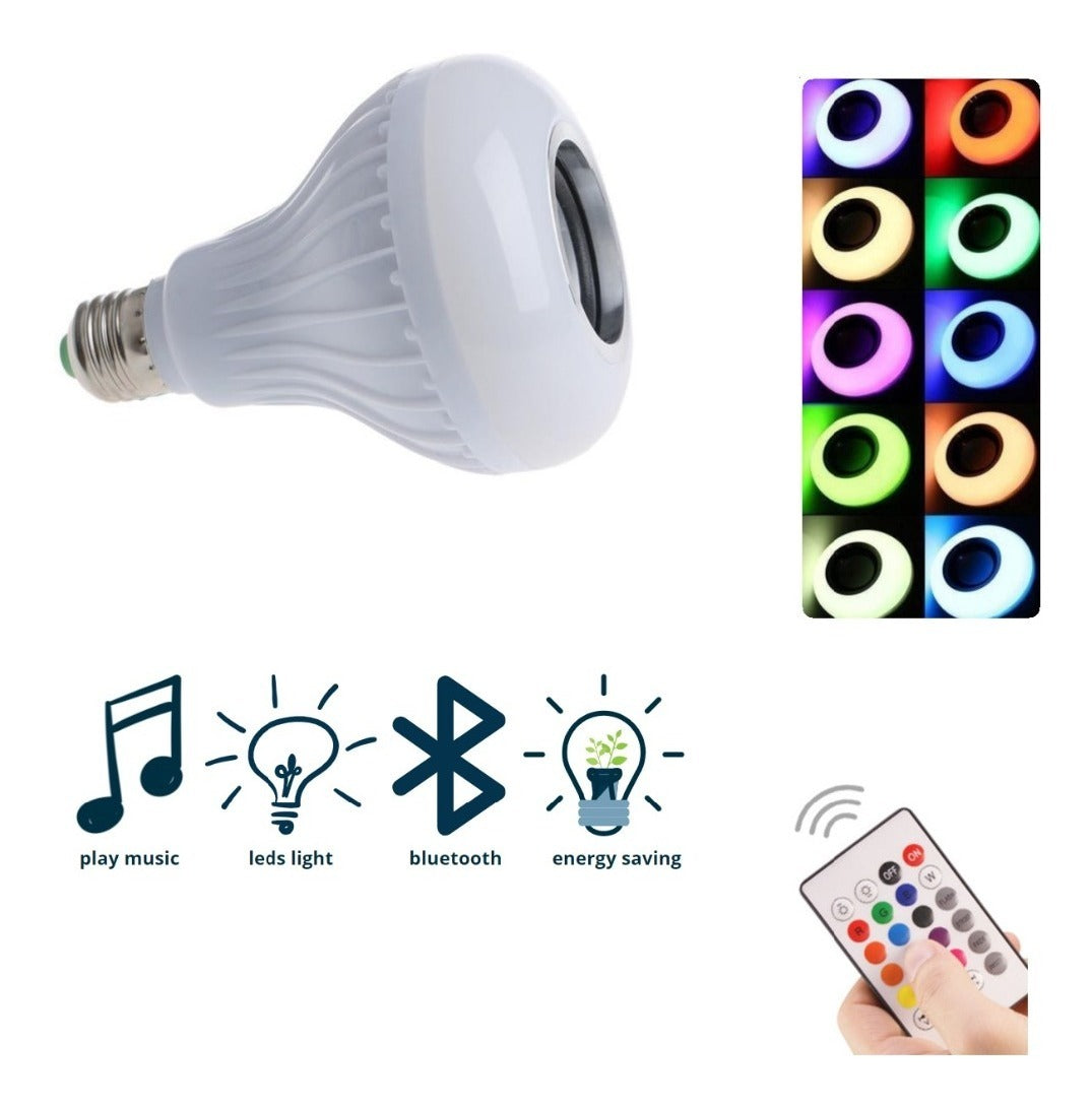 Este producto hace el trabajo de dos elementos a la vez. Tiene 13 luces que cambian de color y 4 modos de luz Le proporciona un control remoto que puede controlar las luces y el volumen de la música. Un solo control remoto puede controlar varias bombillas a la vez.